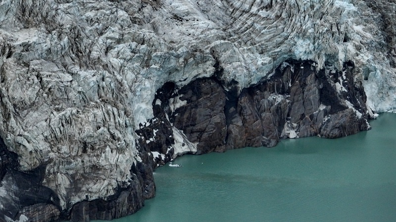 7月19日拍攝的薩普冰川冰舌末端(無(wú)人機(jī)照片)。