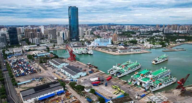 這是7月22日拍攝的恢復(fù)通航后的??谑行阌⒏郏o(wú)人機(jī)照片)。