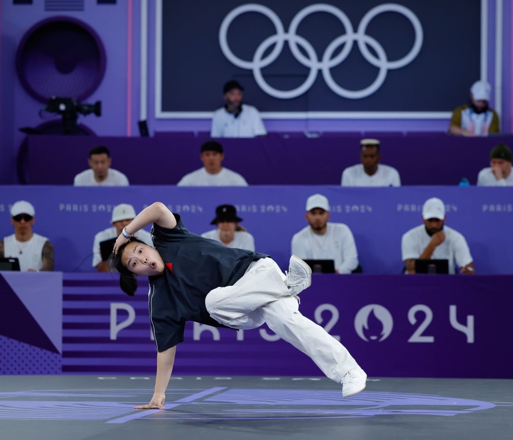 巴黎奧運會霹靂舞女子組比賽,中國選手曾瑩瑩在比賽中。新華社記者 徐子鑒 攝