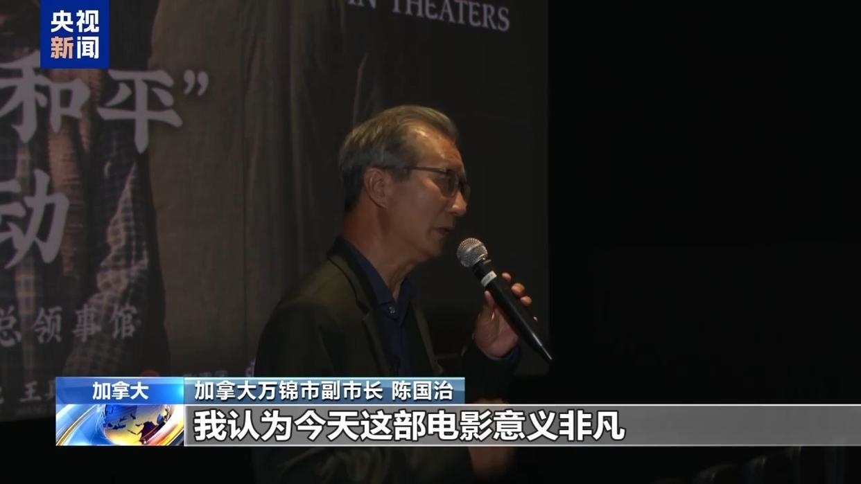 中國駐溫哥華代總領(lǐng)事曾智也出席了首映式。曾智強調(diào),牢記歷史的經(jīng)驗和教訓(xùn),絕不是為了延續(xù)仇恨,而是為了以史為鑒,尊重歷史,維護和平。曾智表示,中加兩國在二戰(zhàn)期間曾經(jīng)在東方戰(zhàn)場并肩攜手作戰(zhàn),真誠希望與領(lǐng)區(qū)各界一道,銘記歷史,珍愛和平,緬懷先烈,開創(chuàng)未來,共同秉持正確的二戰(zhàn)史觀,共同維護戰(zhàn)后的國際秩序,捍衛(wèi)國際的公平正義,為人類的和平與發(fā)展,共同譜寫新的篇章。