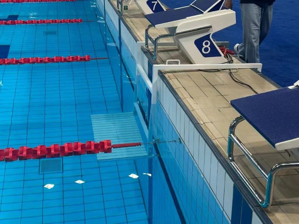 為了幫助救生和自由潛水比賽精準(zhǔn)計(jì)時(shí),成都體育學(xué)院三岔湖校區(qū)游泳館安裝了智能游泳出發(fā)臺(tái)。場(chǎng)館相關(guān)負(fù)責(zé)人王金陽介紹說,高級(jí)別賽事對(duì)泳池出發(fā)臺(tái)要求很高,要做到計(jì)時(shí)非常精確,因?yàn)槟呐?.1秒的誤差也可能對(duì)比賽結(jié)果產(chǎn)生影響,為此他們專門在泳池邊裝上了觸控板和芯片等智能計(jì)時(shí)設(shè)備,以確保達(dá)到比賽要求。