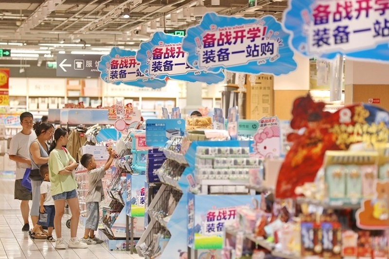 8月24日,在浙江省嘉興市南湖區(qū)一家商場(chǎng),家長(zhǎng)帶著孩子選購(gòu)學(xué)習(xí)用品。