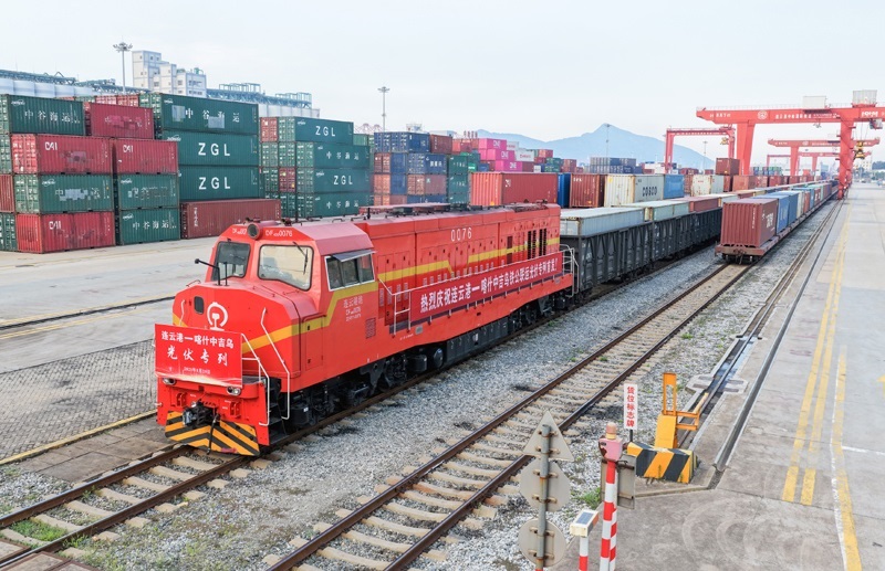 8月29日,在位于江蘇連云港市的中哈(連云港)物流合作基地,滿載50個集裝箱的光伏專列發(fā)車,這是中哈(連云港)物流合作基地開行的首列光伏專列。該趟列車抵達喀什北站后,貨物再通過汽車運抵烏茲別克斯坦,與傳統(tǒng)的全鐵路運輸相比,這種鐵公聯(lián)運方式可有效縮短運輸距離,并發(fā)揮鐵路運輸?shù)拈L距離、大運量和公路運輸?shù)撵`活性特點。