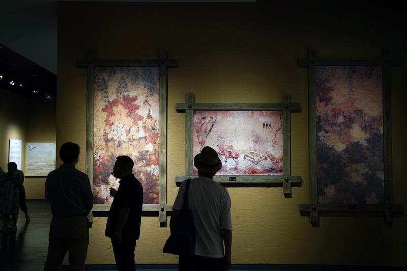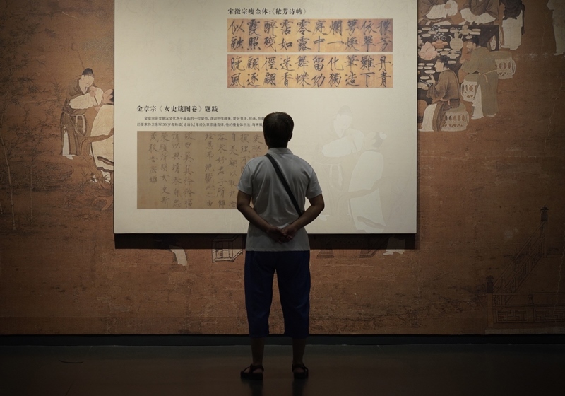 人們?cè)谖挥诠枮I市阿城區(qū)的金上京歷史博物館參觀(8月5日攝)。