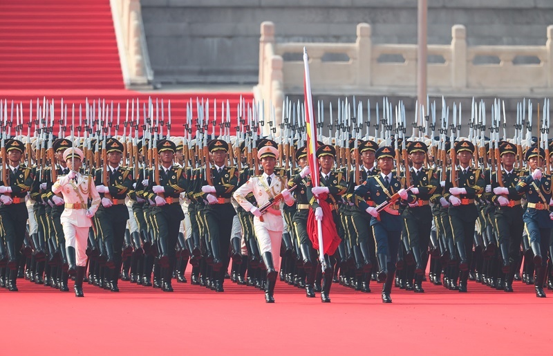 9月3日,紀念中國人民抗日戰(zhàn)爭暨世界反法西斯戰(zhàn)爭勝利80周年大會在北京隆重舉行。這是國旗護衛(wèi)隊在行進中。