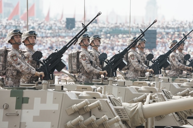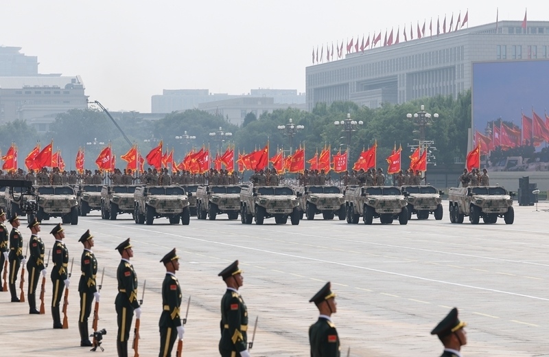 9月3日,紀念中國人民抗日戰(zhàn)爭暨世界反法西斯戰(zhàn)爭勝利80周年大會在北京隆重舉行。這是網(wǎng)絡(luò)空間作戰(zhàn)方隊接受檢閱。
