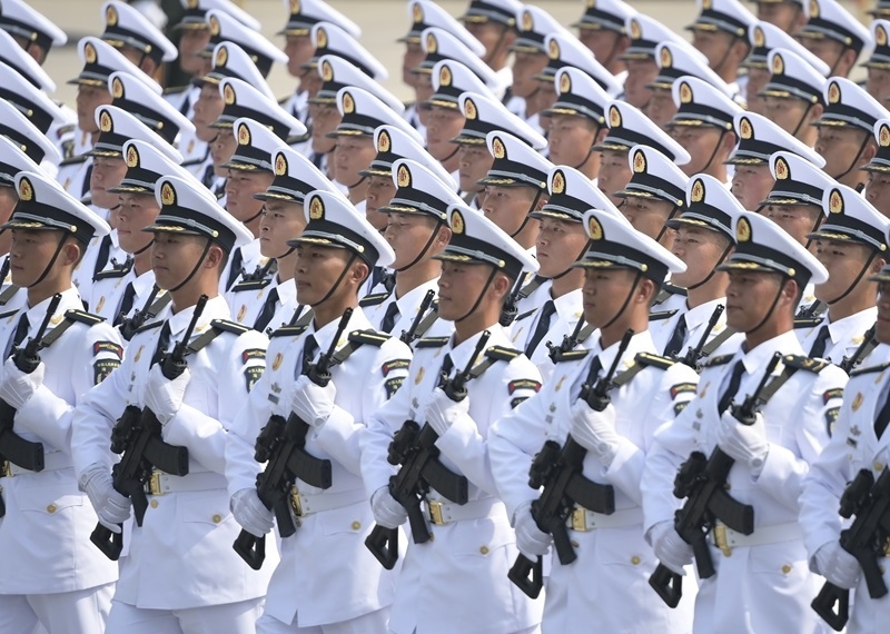9月3日,紀念中國人民抗日戰(zhàn)爭暨世界反法西斯戰(zhàn)爭勝利80周年大會在北京隆重舉行。這是艦載防空武器方隊接受檢閱。