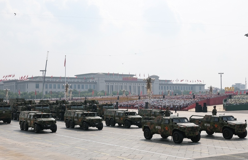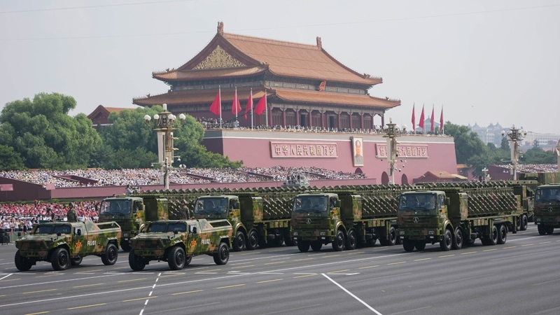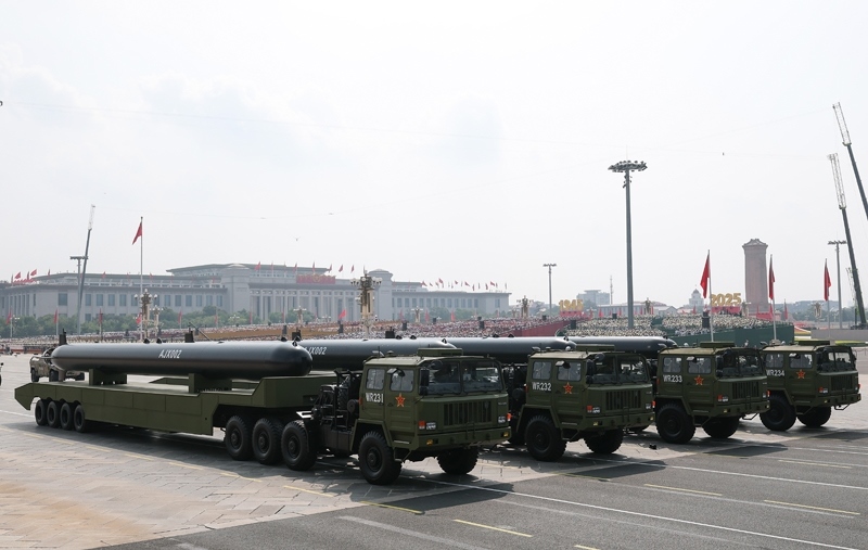 9月3日,紀(jì)念中國人民抗日戰(zhàn)爭暨世界反法西斯戰(zhàn)爭勝利80周年大會在北京隆重舉行。這是高超聲速導(dǎo)彈方隊接受檢閱。