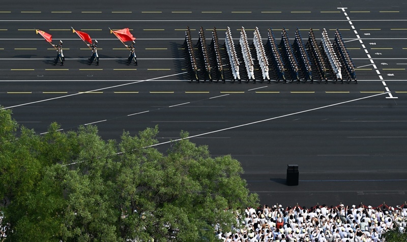 9月3日,紀(jì)念中國人民抗日戰(zhàn)爭暨世界反法西斯戰(zhàn)爭勝利80周年大會在北京隆重舉行。這是徒步方隊接受檢閱。
