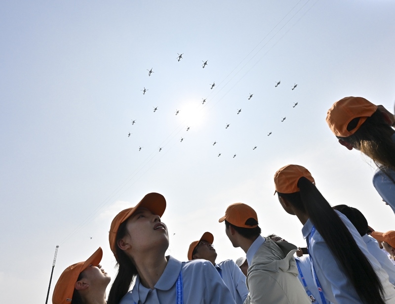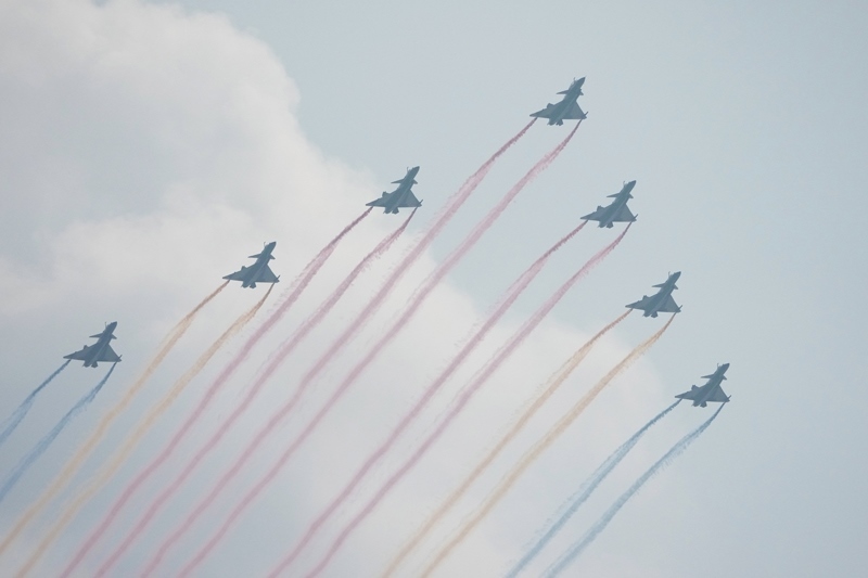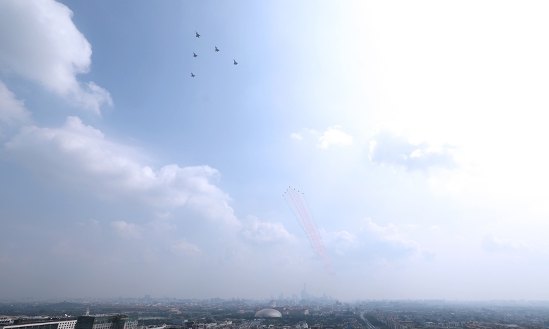 9月3日,紀(jì)念中國人民抗日戰(zhàn)爭暨世界反法西斯戰(zhàn)爭勝利80周年大會在北京隆重舉行。這是空中梯隊接受檢閱。