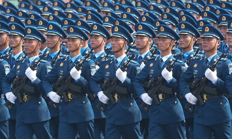 9月3日,紀(jì)念中國(guó)人民抗日戰(zhàn)爭(zhēng)暨世界反法西斯戰(zhàn)爭(zhēng)勝利80周年大會(huì)在北京隆重舉行。這是空軍方隊(duì)接受檢閱。