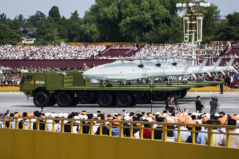 9月3日,紀(jì)念中國(guó)人民抗日戰(zhàn)爭(zhēng)暨世界反法西斯戰(zhàn)爭(zhēng)勝利80周年大會(huì)在北京隆重舉行。這是空中無人作戰(zhàn)方隊(duì)接受檢閱。