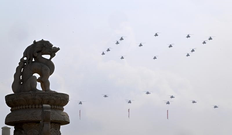 9月3日,紀(jì)念中國(guó)人民抗日戰(zhàn)爭(zhēng)暨世界反法西斯戰(zhàn)爭(zhēng)勝利80周年大會(huì)在北京隆重舉行。這是運(yùn)輸機(jī)梯隊(duì)接受檢閱。