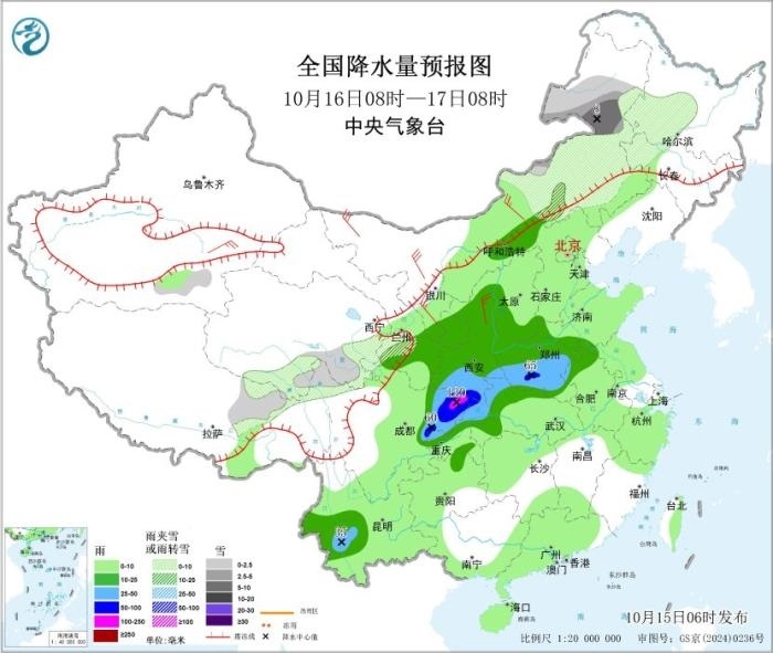 全國降水量預報圖(10月15日08時-16日08時)圖片來源:中央氣象臺網站