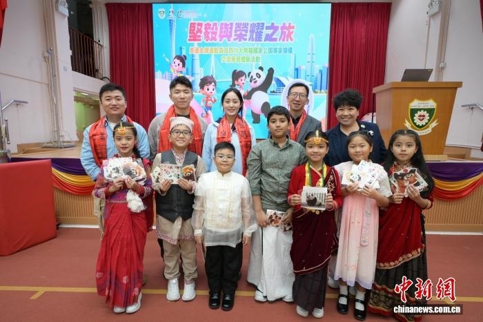 在香港油麻地街坊會學校,四川省大熊貓國家公園文化創(chuàng)意創(chuàng)新聯(lián)盟副秘書長畢飛向?qū)W生們科普四川生態(tài)及大熊貓保育知識。代表團還向?qū)W生派發(fā)文創(chuàng)貼紙,為體育與大熊貓主題書籍簽名。代表團也和同學們一起參觀第十五屆全國運動會主題展板。