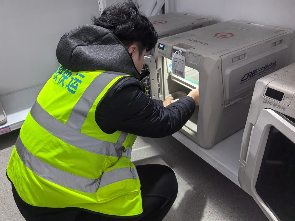 中鐵快運太原南站營業(yè)部業(yè)務(wù)負責(zé)人武鑫介紹:“我們自今年10月啟動高鐵寵物托運服務(wù)試點以來,已經(jīng)托運過寵物貓、寵物狗等。旅客可以在12306官方平臺或到營業(yè)部現(xiàn)場辦理托運業(yè)務(wù)。托運前,需要提交相關(guān)部門的檢疫證明。工作人員會對寵物運輸箱和列車環(huán)境進行嚴(yán)格消毒。寵物運輸箱內(nèi)還帶有攝像頭,主人可以通過監(jiān)控查看自家寵物的實時狀態(tài)。我們配備的工作人員,也會定時檢查寵物狀態(tài),提供必要的安撫和飲水?!?/p>