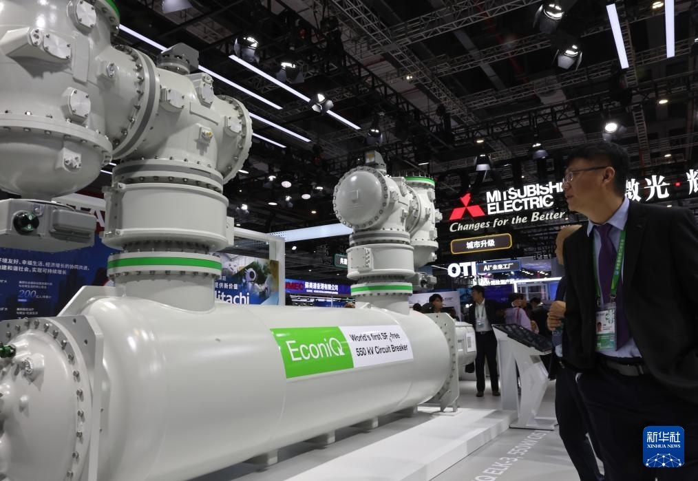 11月6日,參觀者在日立公司一款封閉式氣體絕緣開(kāi)關(guān)設(shè)備展品旁駐足觀看,這是該型號(hào)產(chǎn)品的中國(guó)首展。