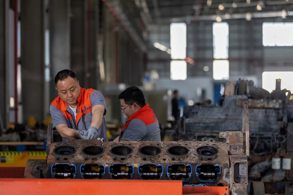 1月13日,中車國(guó)際車輛產(chǎn)業(yè)(海南)有限公司維修師在工廠維修發(fā)動(dòng)機(jī)。(中國(guó)外文局歐亞中心記者段崴 攝)