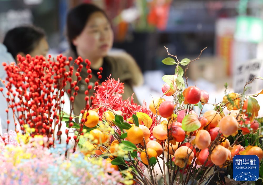 春節(jié)臨近,年味漸濃。各地舉辦年貨大集、寫福字春聯(lián)等活動,人們選購鮮花、中國結(jié)等飾物,迎接新春。