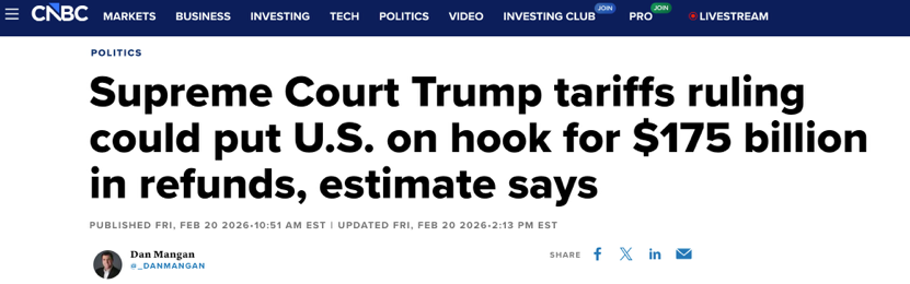 更值得注意的是,從近兩天動作看,白宮的核心優(yōu)先級并不是“盡快把錢退回去”,而是“盡快把關(guān)稅工具續(xù)上”。白宮一方面通過行政令,終止依據(jù)IEEPA加征的額外從價稅,另一方面又迅速依《1974年貿(mào)易法》第一百二十二條祭出為期150天的臨時全球15%關(guān)稅,同時加大利用301條甚至232條等傳統(tǒng)工具,繼續(xù)搭建新的關(guān)稅墻。這套動作釋放的信號十分明確:關(guān)稅杠桿要繼續(xù)用,至于已經(jīng)收來的稅款怎么退、退多少,姑且交給訴訟和程序去磨。換句話說,即便法院逼著政府退錢,白宮也在試圖通過新一輪、基于其他法律授權(quán)的關(guān)稅,把現(xiàn)金流盡可能補(bǔ)回來。