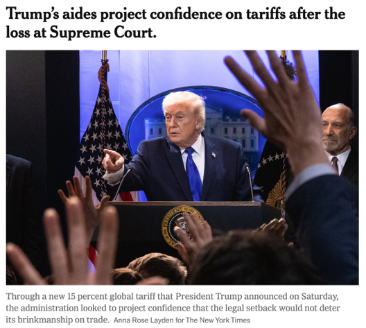 △《紐約時報》報道,特朗普政府當(dāng)?shù)貢r間22日表示,新的征稅方法將以更合法、更持久的方式實(shí)現(xiàn)美國的貿(mào)易目標(biāo)