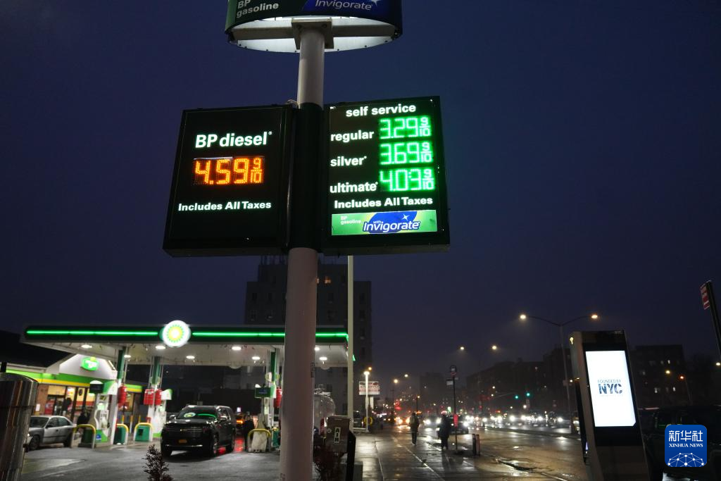 這是3月5日在美國紐約一座加油站拍攝的油價(jià)顯示屏。新華社記者 張鳳國 攝