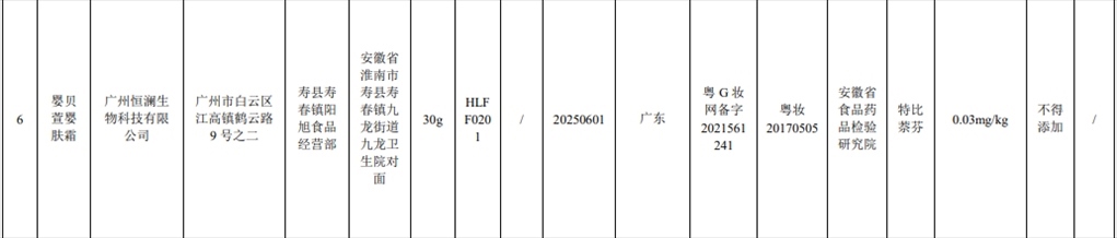 記者注意到,此次通報(bào)的7批次含禁用物質(zhì)化妝品,其中2批次是嬰童產(chǎn)品。產(chǎn)品標(biāo)簽標(biāo)示為金發(fā)拉比婦嬰童用品股份有限公司生產(chǎn)的貝比拉比蛋黃油被檢出含有黃體酮;產(chǎn)品標(biāo)簽標(biāo)示為廣州恒瀾生物科技有限公司生產(chǎn)的嬰貝萱嬰膚霜被檢出含有特比萘芬。