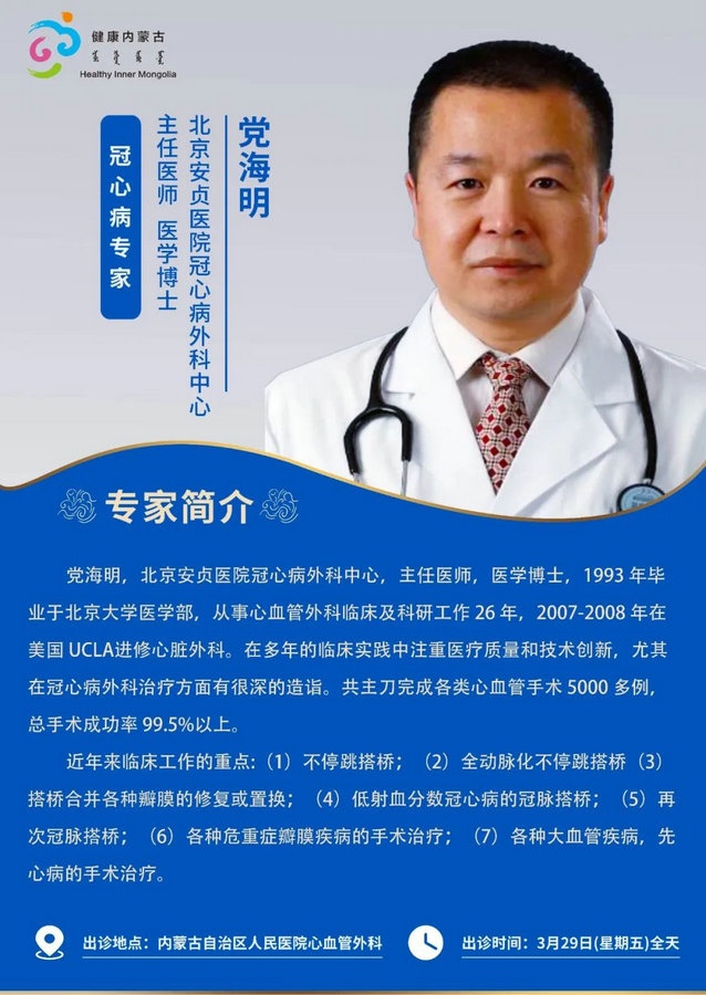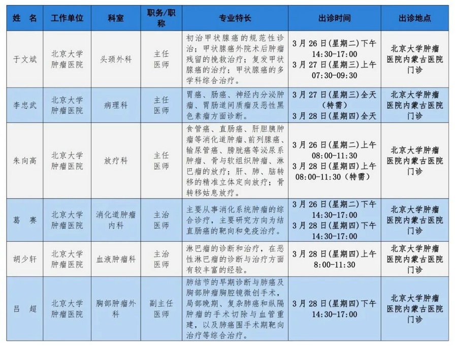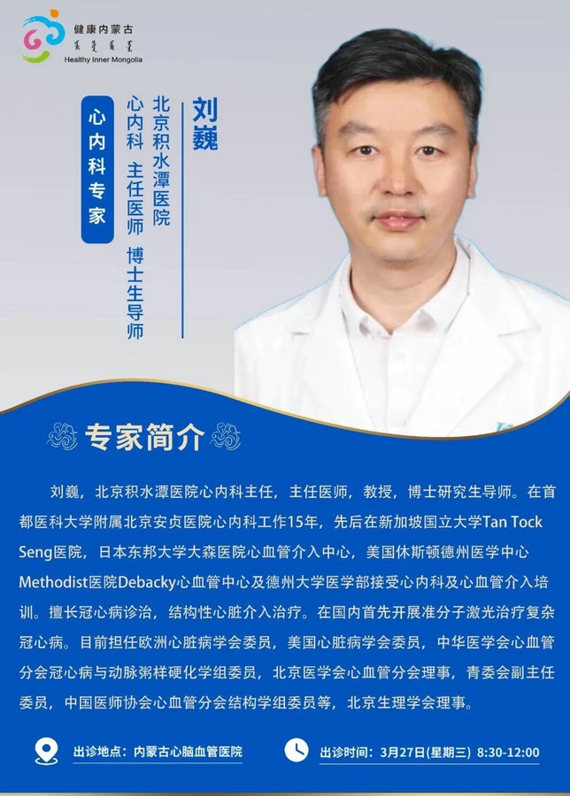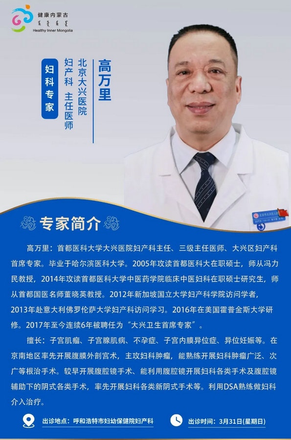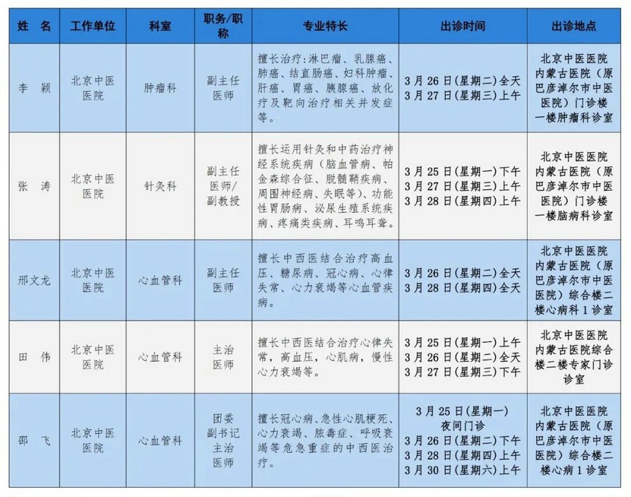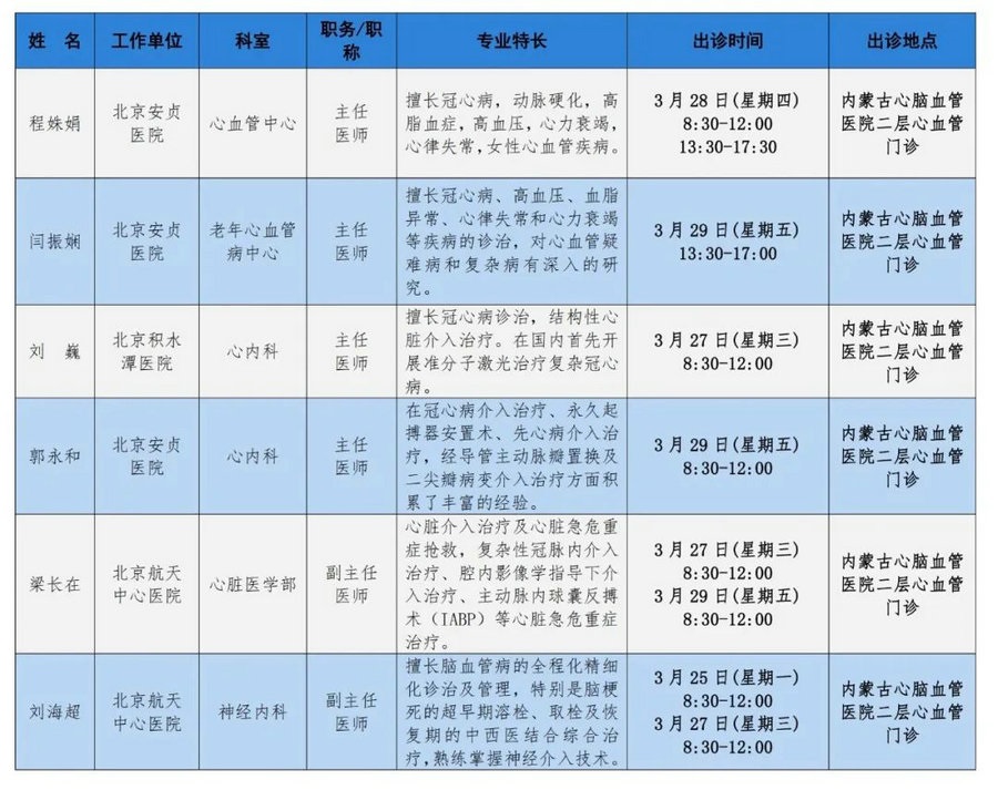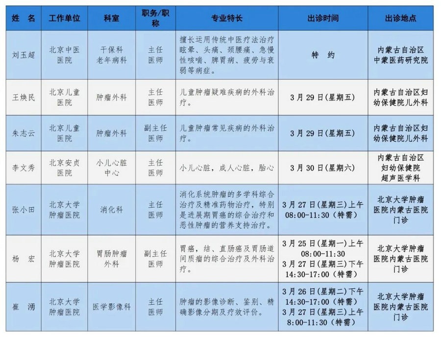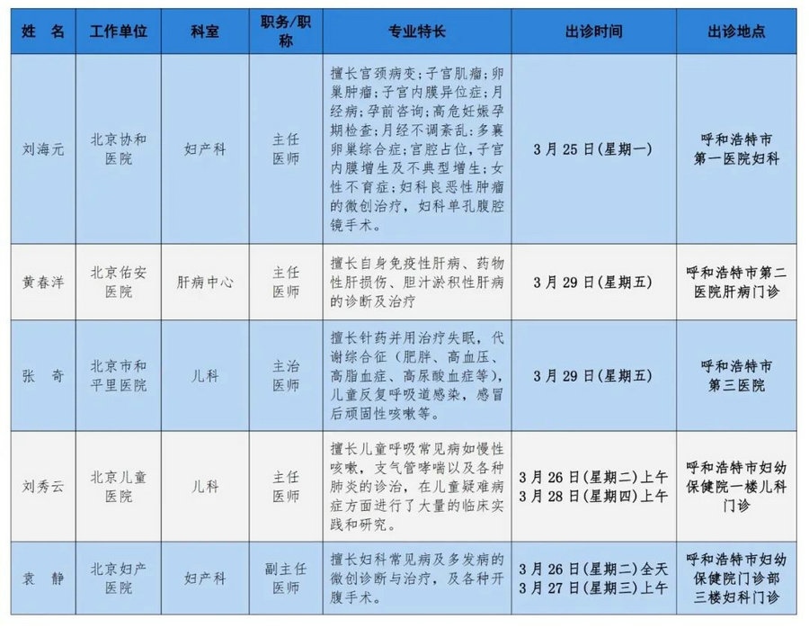 京蒙協(xié)作 政協(xié)助力。每周有北京相關(guān)協(xié)作醫(yī)院專家來呼和浩特出診,現(xiàn)將本周專家出診信息予以發(fā)布。