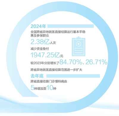 2024年,全國(guó)跨省異地就醫(yī)直接結(jié)算惠及參保群眾2.38億人次,成績(jī)來之不易。我國(guó)跨省流動(dòng)人口數(shù)量大,如何更好滿足人民群眾的異地就醫(yī)需求,是一道必答題。近年來,各地各部門著力打通異地就醫(yī)的難點(diǎn)堵點(diǎn),推出一系列實(shí)實(shí)在在的舉措,覆蓋范圍不斷擴(kuò)大、慢特病病種進(jìn)一步擴(kuò)圍、經(jīng)辦服務(wù)持續(xù)優(yōu)化,人民群眾的獲得感不斷增強(qiáng),笑容更多、心里更暖。
