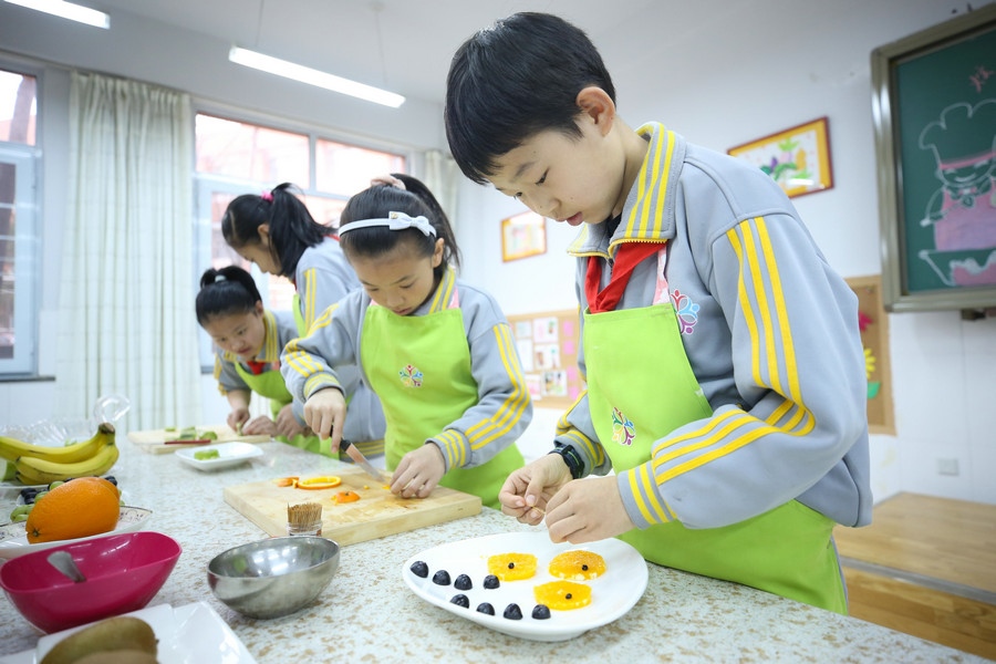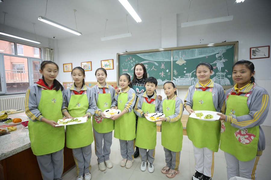 “今日課程學(xué)習(xí)的是水果拼盤和可樂(lè)雞翅?!备S勺鏟翻動(dòng),添上各種調(diào)料,一個(gè)個(gè)身著圍裙的學(xué)生們正在老師的指導(dǎo)下忙的不亦樂(lè)乎。從擇菜、烹飪到清洗廚具,一個(gè)個(gè)學(xué)生儼然已經(jīng)成為“小廚師”。從三年級(jí)開(kāi)始,學(xué)校還開(kāi)展了陶藝、木工、科技制作等活動(dòng),找準(zhǔn)學(xué)生的興趣點(diǎn),學(xué)校有趣的勞動(dòng)技能活動(dòng)吸引了學(xué)生的眼球。