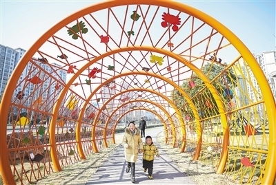 江蘇省淮安市,小朋友在步道廣場(chǎng)玩耍。 趙啟瑞攝(人民視覺(jué))
