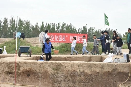 參加公眾考古開放日的有周邊的村民、孩童,也有中學(xué)生。考古學(xué)院的師生們會(huì)帶著大家參觀考古現(xiàn)場(chǎng)、實(shí)驗(yàn)室和駐扎基地,讓更多人走進(jìn)考古人的“夢(mèng)工廠”。很多青少年參觀后,才知道當(dāng)下考古也有很多科技和智能元素。