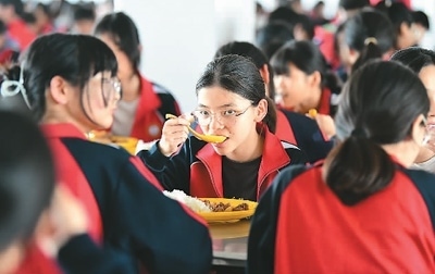 近年來(lái),安徽省阜陽(yáng)市阜南縣各配備有營(yíng)養(yǎng)餐的學(xué)校嚴(yán)把食品衛(wèi)生關(guān),讓學(xué)生的營(yíng)養(yǎng)餐真正成為陽(yáng)光餐、幸福餐。圖為5月17日,阜南縣黃崗鎮(zhèn)靳成學(xué)校的學(xué)生們?cè)谑程贸晕顼垺?呂乃明攝(人民視覺(jué))