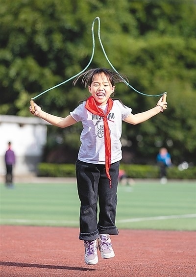 近年來(lái),貴州省從江縣各中小學(xué)校堅(jiān)持確保學(xué)生每天鍛煉1小時(shí),促進(jìn)青少年兒童健康成長(zhǎng)。圖為3月13日,從江縣剛邊壯族鄉(xiāng)中心小學(xué)學(xué)生在體育課上跳繩。羅京來(lái)攝(人民視覺(jué))