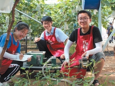 人才培養(yǎng)在遼寧省營口市鲅魚圈區(qū)葡萄科技小院,沈陽農(nóng)業(yè)大學(xué)師生在田間進行指標(biāo)測定。邢若男攝(人民視覺)