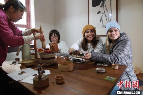 1月8日,來自美國加利福尼亞州州立大學(xué)長灘分校的十余名學(xué)生來到山東青島,體驗(yàn)圍爐煮茶感受中國傳統(tǒng)文化。