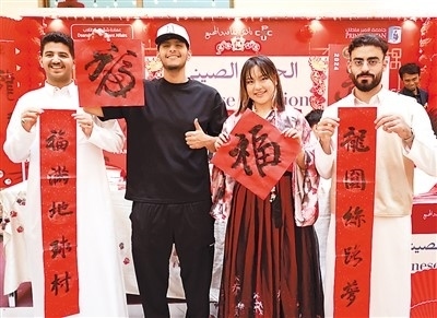 “龍圓絲路夢(mèng),福滿地球村”。這是在沙特參加社會(huì)實(shí)踐活動(dòng)的清華大學(xué)學(xué)生在活動(dòng)現(xiàn)場(chǎng)寫(xiě)下的一副春聯(lián)。他們擔(dān)任了本次活動(dòng)的志愿者,和孔院老師們?yōu)楝F(xiàn)場(chǎng)觀眾帶來(lái)了二胡演奏和太極扇表演等節(jié)目,觀眾紛紛拿起手機(jī)拍攝。