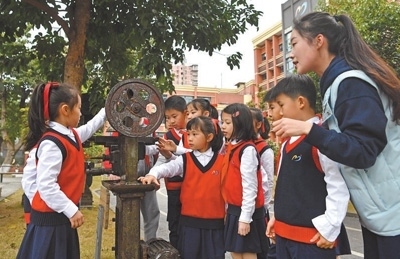2022年3月,九龍坡區(qū)教委印發(fā)《關(guān)于推進(jìn)中小學(xué)集團(tuán)化辦學(xué)的意見》,謝家灣金茂小學(xué)成為謝家灣教育集團(tuán)一體化辦學(xué)成員校。謝家灣金茂小學(xué)的前身是重慶建設(shè)工業(yè)(集團(tuán))有限公司子弟學(xué)校,約1/3的教師曾是工廠職工?!盎趯W(xué)校情況,我們強(qiáng)調(diào)培養(yǎng)學(xué)生養(yǎng)成熱愛勞動的習(xí)慣,形成陽光心態(tài)。”謝家灣金茂小學(xué)黨總支書記楊永財指著校園內(nèi)擺放的老舊機(jī)床說,“重慶建設(shè)工業(yè)(集團(tuán))有限公司發(fā)展歷史厚重,學(xué)校積極挖掘紅色資源,給孩子們講好革命歷史,上好思政課?!?/p>