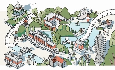 周 玨繪周玨畢業(yè)于北京大學(xué)考古文博學(xué)院,是一名職業(yè)插畫師,曾經(jīng)參加過導(dǎo)師張劍葳副教授組織的燕園文物數(shù)字化工作坊。她用畫作描述了師生參與燕南園歷史地段景觀保護(hù)與展示項目的情景。“燕園曾是我學(xué)習(xí)生活過的地方,又是值得研究與保護(hù)的文化遺產(chǎn)。燕園不僅以塔、湖聞名,還有西校門、辦公樓、紅五樓、校景亭、花神廟和燕南園。”