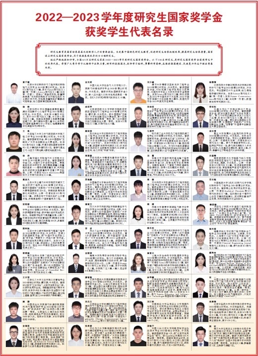 經(jīng)過(guò)嚴(yán)格選拔和評(píng)審,全國(guó)4.5萬(wàn)名研究生榮獲2022—2023學(xué)年度研究生國(guó)家獎(jiǎng)學(xué)金。以下100名研究生,是研究生國(guó)家獎(jiǎng)學(xué)金獲獎(jiǎng)學(xué)生中的優(yōu)秀代表。希望廣大青年學(xué)子從榜樣中汲取力量,樹(shù)牢科技報(bào)國(guó)志,刻苦學(xué)習(xí)鉆研,勇攀科學(xué)高峰,在推進(jìn)強(qiáng)國(guó)建設(shè)、民族復(fù)興偉業(yè)中綻放青春光彩。