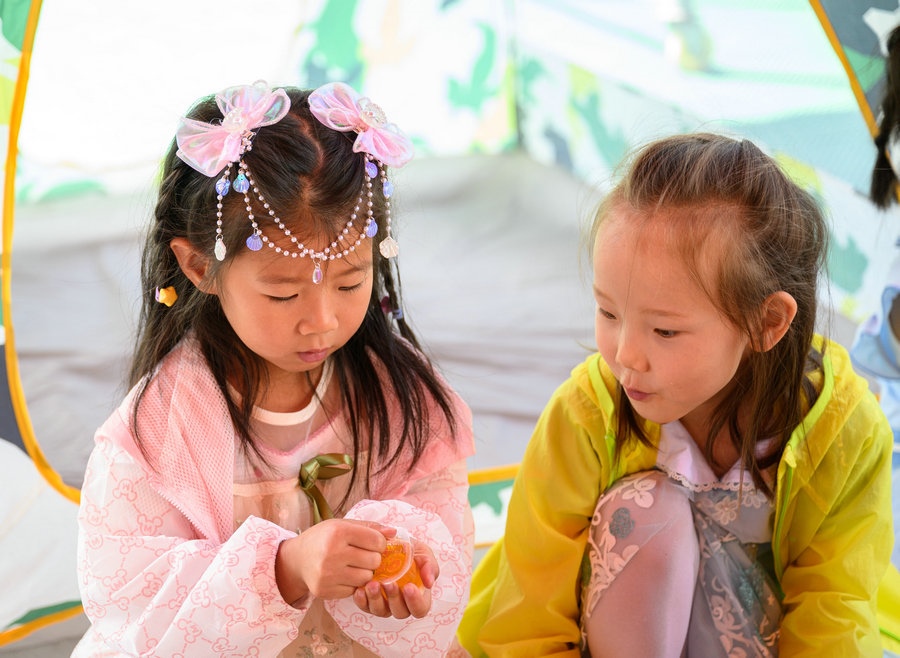 與小帳篷合影的小朋友