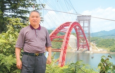 由鄭皆連指導(dǎo)建造的安徽黃山太平湖大橋跨徑達330米。圖為鄭皆連在施工現(xiàn)場。