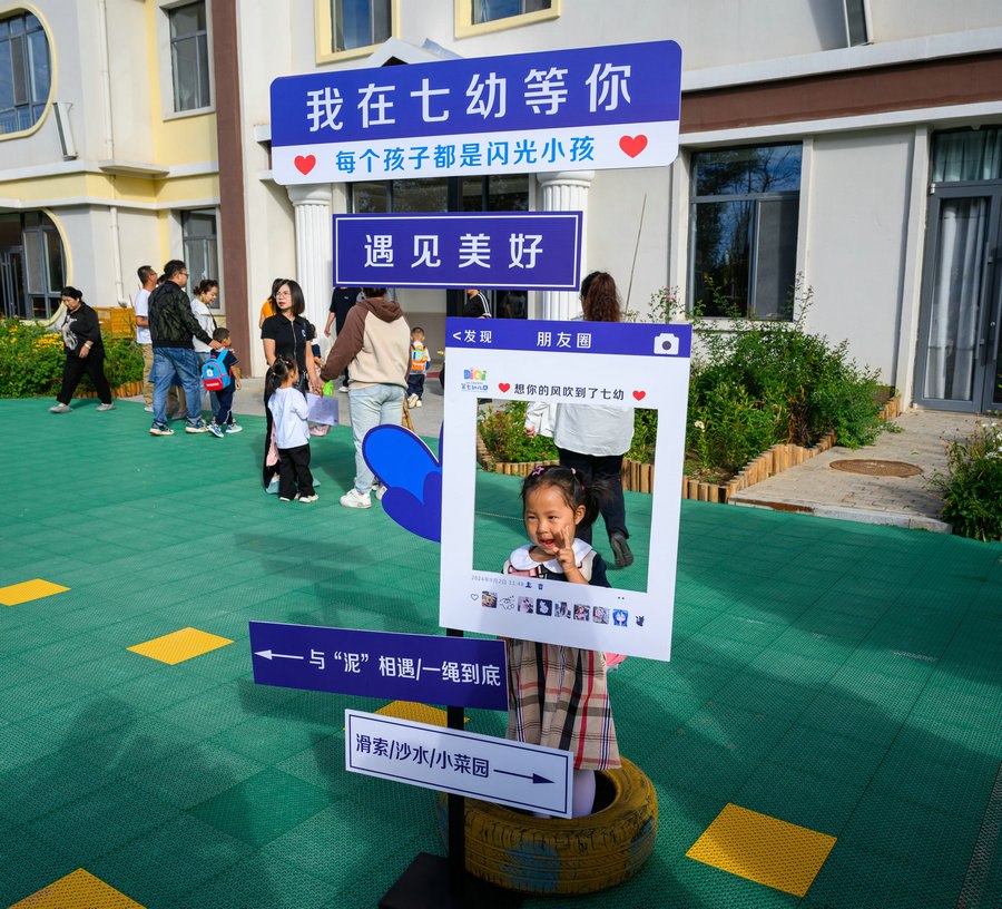 小朋友在家長(zhǎng)的陪伴下,興高采烈走進(jìn)校園內(nèi)各個(gè)打卡地,打卡蓋章、拍照留念。