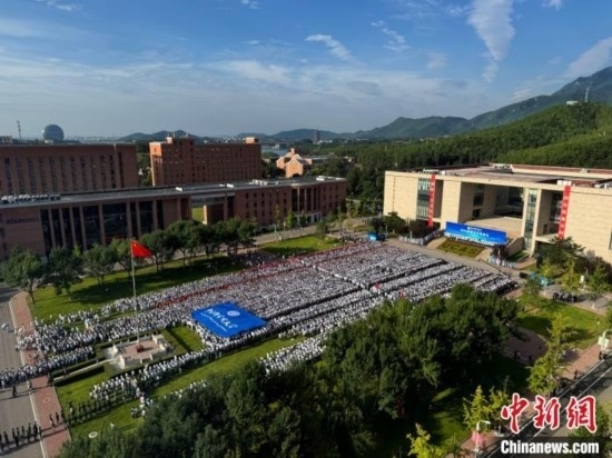 9月1日,國科大2024級新生開學(xué)典禮舉行,校園內(nèi)迎新氛圍濃郁,當(dāng)日天氣晴好,可遠(yuǎn)眺長城。中新網(wǎng)記者 孫自法 攝