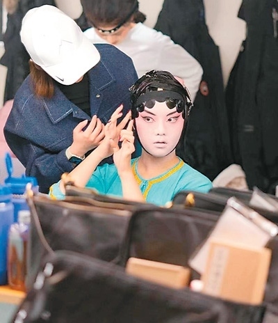 史欣玉對于演出扮相有嚴格的要求,她說:“我想盡可能地將戲曲完美呈現(xiàn)在觀眾眼前,讓大家一看就知道,我們的演出是專業(yè)的,因此妝造、舞臺效果都不能馬虎。我們每個人身兼數(shù)職,既要表演,也要學(xué)習(xí)妝造,互相幫忙完成扮相?!?/p>