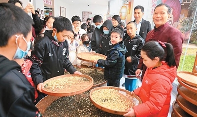 在福州教育學院附屬第二小學,臺灣青少年近距離領略中華傳統(tǒng)文化的獨特魅力。書法藝術的雅致、篆刻技藝的精妙、掐絲琺瑯的華麗、金箔畫書簽的韻味……每一項體驗都給臺灣青少年留下深刻印象。福州茉莉花茶傳統(tǒng)窨制工藝傳承人張子健現(xiàn)場展示了茉莉花茶制作技藝,不少臺灣青少年興趣盎然地跟著學習。兩岸青少年還攜手種下“連心樹”,期盼友誼之樹茁壯成長,未來見證彼此情誼的延續(xù)與發(fā)展。