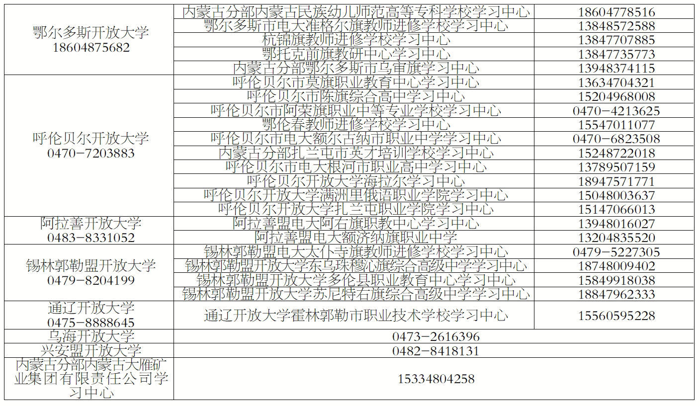 二、內(nèi)蒙古開(kāi)放大學(xué)提醒社會(huì)公眾和廣大學(xué)生,我校嚴(yán)格按照國(guó)家開(kāi)放大學(xué)批復(fù)的學(xué)習(xí)中心開(kāi)展辦學(xué)行為,從未在內(nèi)蒙古地區(qū)授權(quán)代理機(jī)構(gòu)或委托個(gè)人以“國(guó)家開(kāi)放大學(xué)”或“內(nèi)蒙古開(kāi)放大學(xué)”名義代理招生。任何自稱與“內(nèi)蒙古開(kāi)放大學(xué)”合作招生,宣稱“不用學(xué)習(xí)”、“不用考試”、“免試免考拿證”、“包學(xué)包過(guò)”、“報(bào)名=畢業(yè)”等虛假宣傳以及亂收費(fèi)行為,均為違法行為。我校享有“內(nèi)蒙古開(kāi)放大學(xué)”名稱的專屬使用權(quán),任何單位和個(gè)人未經(jīng)我校允許均無(wú)權(quán)以我校名義開(kāi)展對(duì)外宣傳。若查實(shí)相關(guān)機(jī)構(gòu)或個(gè)人存在侵權(quán)行為,我校將保留一切訴之法律途徑解決的權(quán)利,由此造成的后果全部由侵權(quán)行為人承擔(dān)。