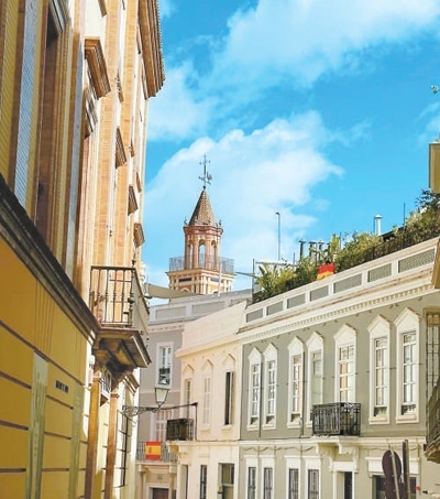 市中心的老城區(qū)商業(yè)街,現(xiàn)代與歷史交融得相得益彰——在這里,可以買到塞維利亞傳統(tǒng)民族舞蹈弗拉門戈的經(jīng)典裝扮,也找得到當(dāng)代潮流設(shè)計師的前衛(wèi)設(shè)計;可以步入有百年歷史的手工藝品老店,也可以打卡開業(yè)不久透著青春潮流氣息的文創(chuàng)快閃店。我從路邊買一支巧克力橙皮口味的冰激凌,邊吃邊逛,覽不盡有趣街景。