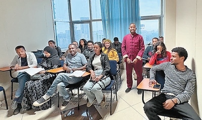 2021年,卡利布學(xué)成回到埃塞俄比亞,發(fā)現(xiàn)很多埃塞人有學(xué)習(xí)中文的需求,便開辦了“你好”中文學(xué)校。針對當(dāng)?shù)厝说陌l(fā)音和學(xué)習(xí)習(xí)慣,開發(fā)了阿姆哈拉語和中文雙語教材,在當(dāng)?shù)刂形慕逃I(lǐng)域獨樹一幟,吸引了上百名學(xué)員。這些學(xué)員不僅有即將赴中國留學(xué)的學(xué)生,還有與中國有生意往來的商人等。此外,卡利布教學(xué)內(nèi)容的一部分是教中國人學(xué)習(xí)阿姆哈拉語,旨在幫助大家更好地融入當(dāng)?shù)厣睢?/p>