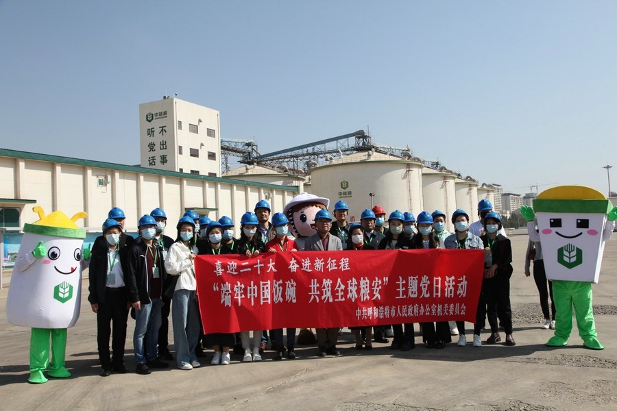 開放日期間,呼和浩特直屬庫有限公司黨委還與呼和浩特市政府辦公室機關(guān)黨委共同開展了“端牢中國飯碗,共筑全球糧安”聯(lián)合黨日活動。